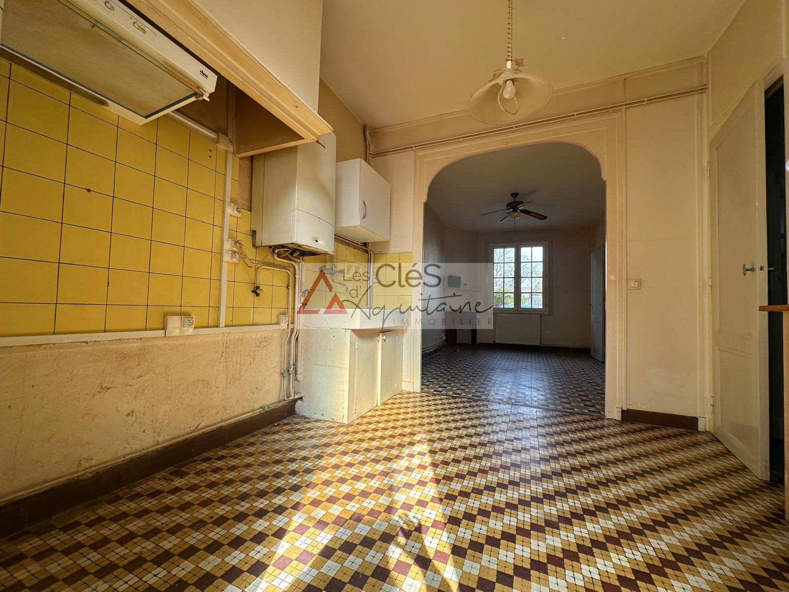 Cadillac-Sur-Garonne (33410)Au cœur de la bastide, jolie maison de ville en pierre se composant en RDC d'une cuisine ouverte sur la pièce de vie donnant sur belle cour sans vis-à-vis, d'une salle de bains avec wc.